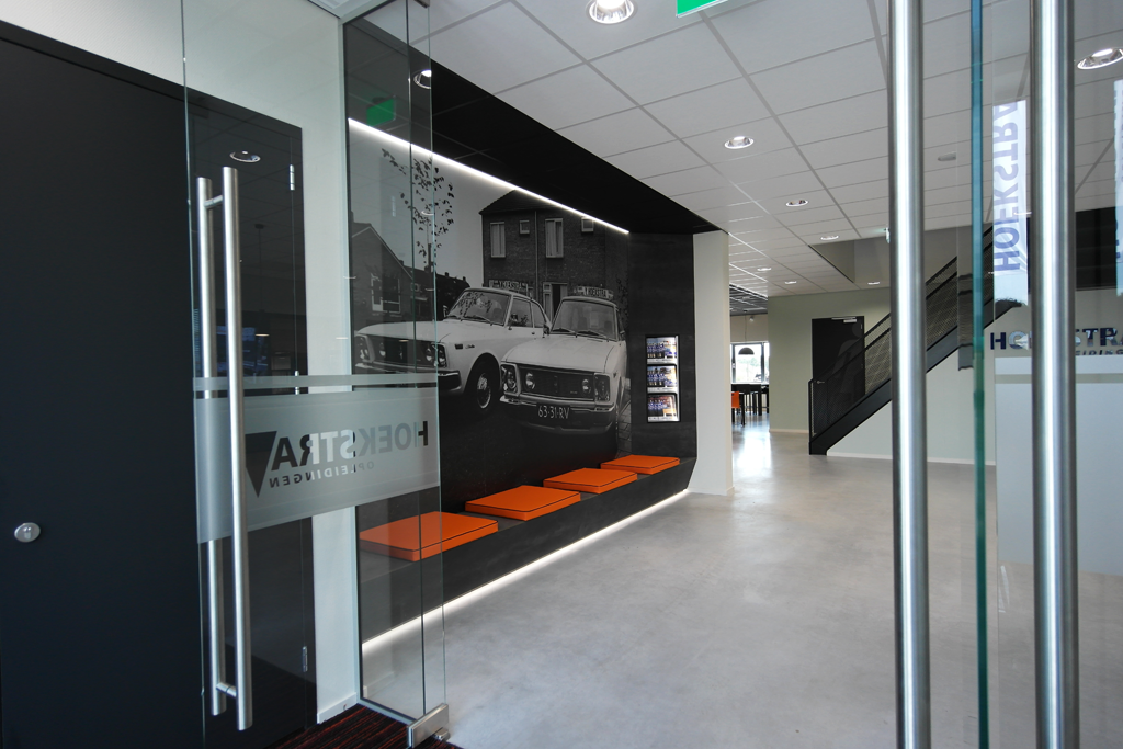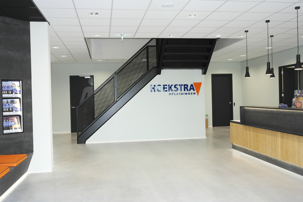 Voor het nieuw te realiseren rijopleidingen complex van Hoekstra ontwerpen we het interieur van het kantoor en opleidingen centrum. Het plan is gepositioneerd rond een centraal entree wat overloopt in een open trap naar de 1e verdieping waar de opleiding lokalen zijn. Het interieur wordt gekenmerkt door een basis van grijs en zwart, met bamboo en beton accenten,