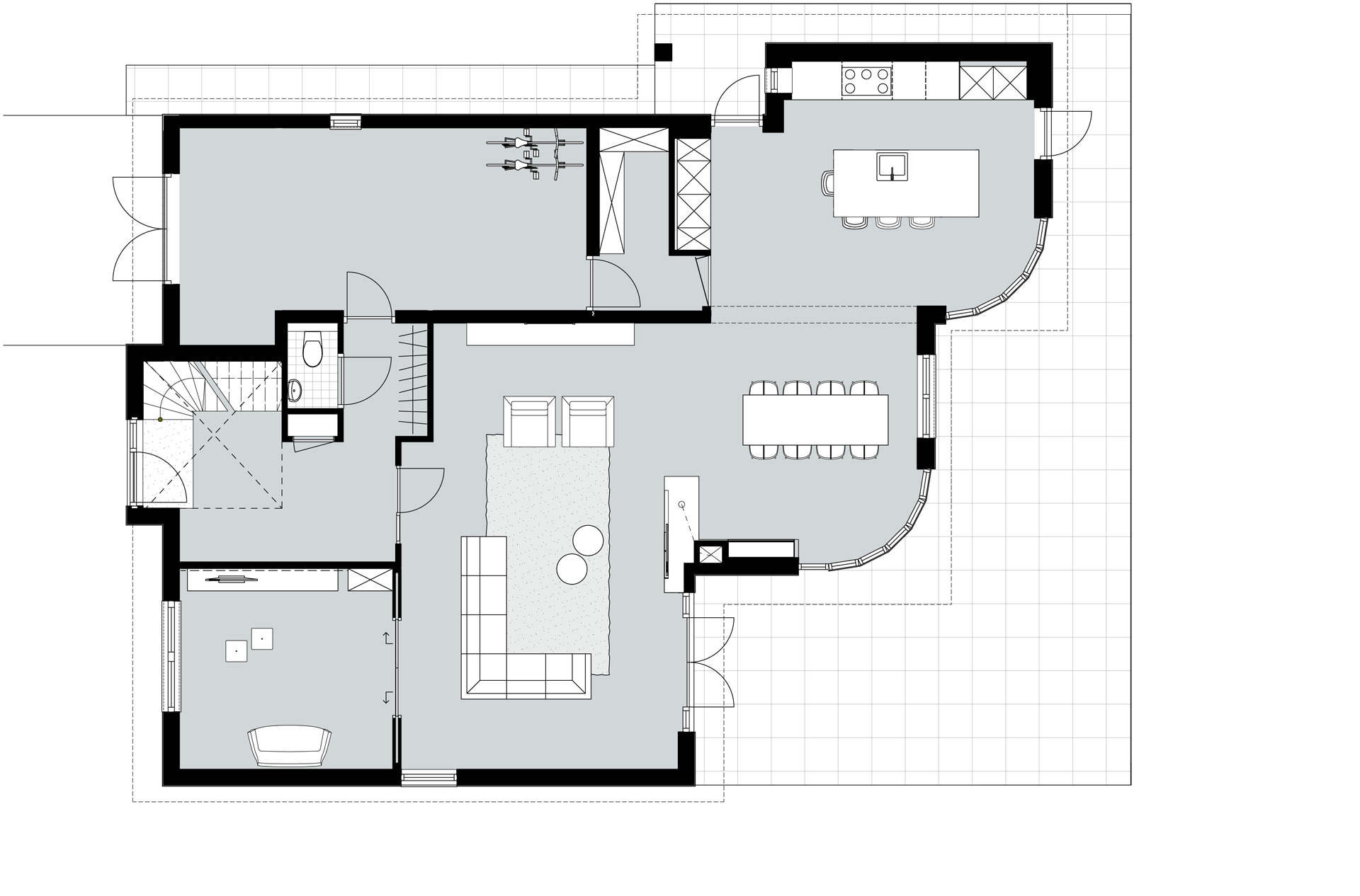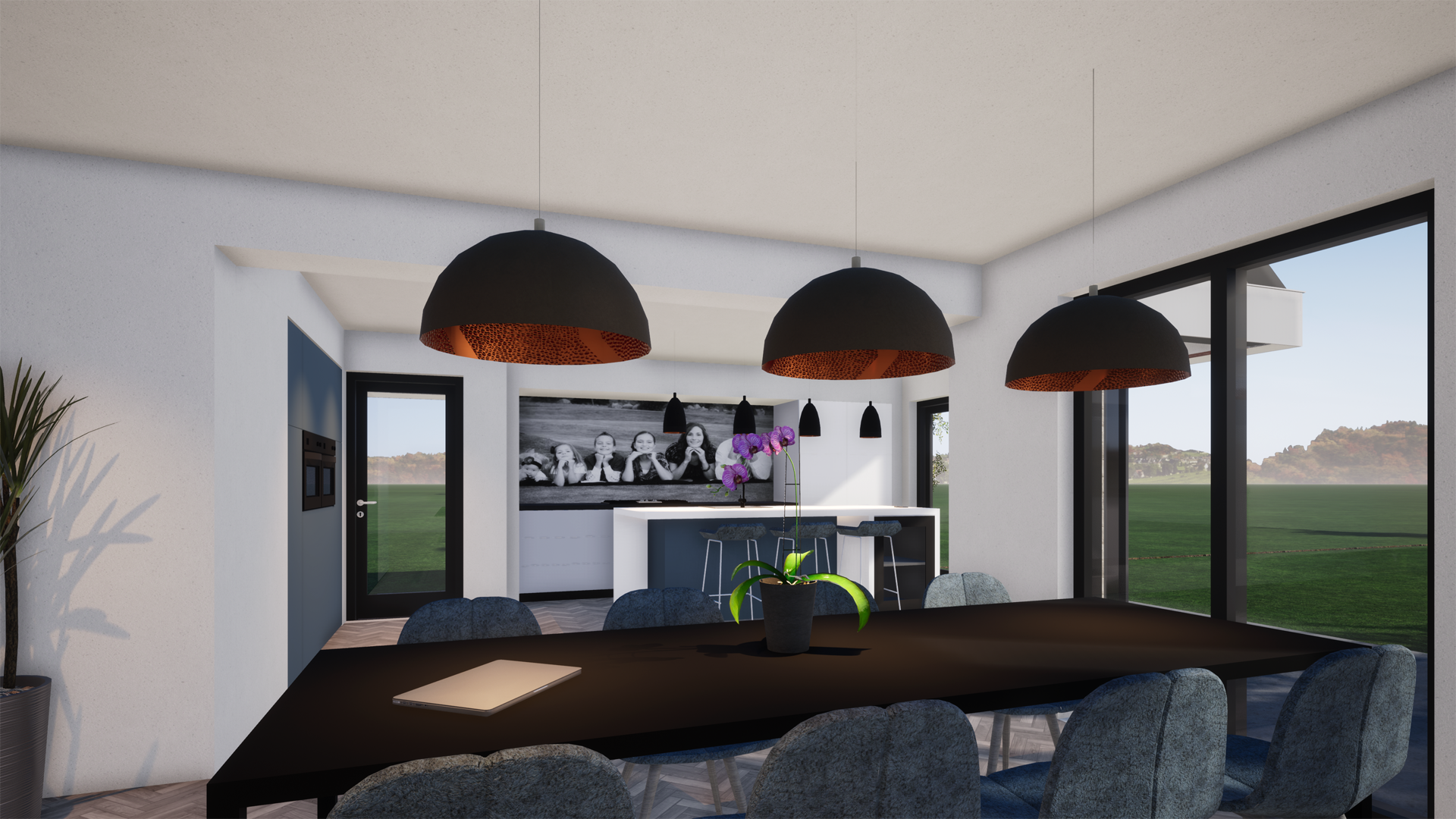 Voor een vrijstaande woning in het duizend en één eilandenrijk van Zuid-Scharwoude hebben wij een nieuwe interieur en een nieuw jasje ontworpen. De bestaande woning van de jaren tachtig bezat reeds een aanbouw. Door het verwijderen van diverse wanden en elementen hebben we de woning open gemaakt en her ingedeeld. Er is één totaal ruimte gemaakt waarin leven centraal staat. Vanuit de keuken is er zicht in de game room en anders om. De grote living werkt als centraal hart.