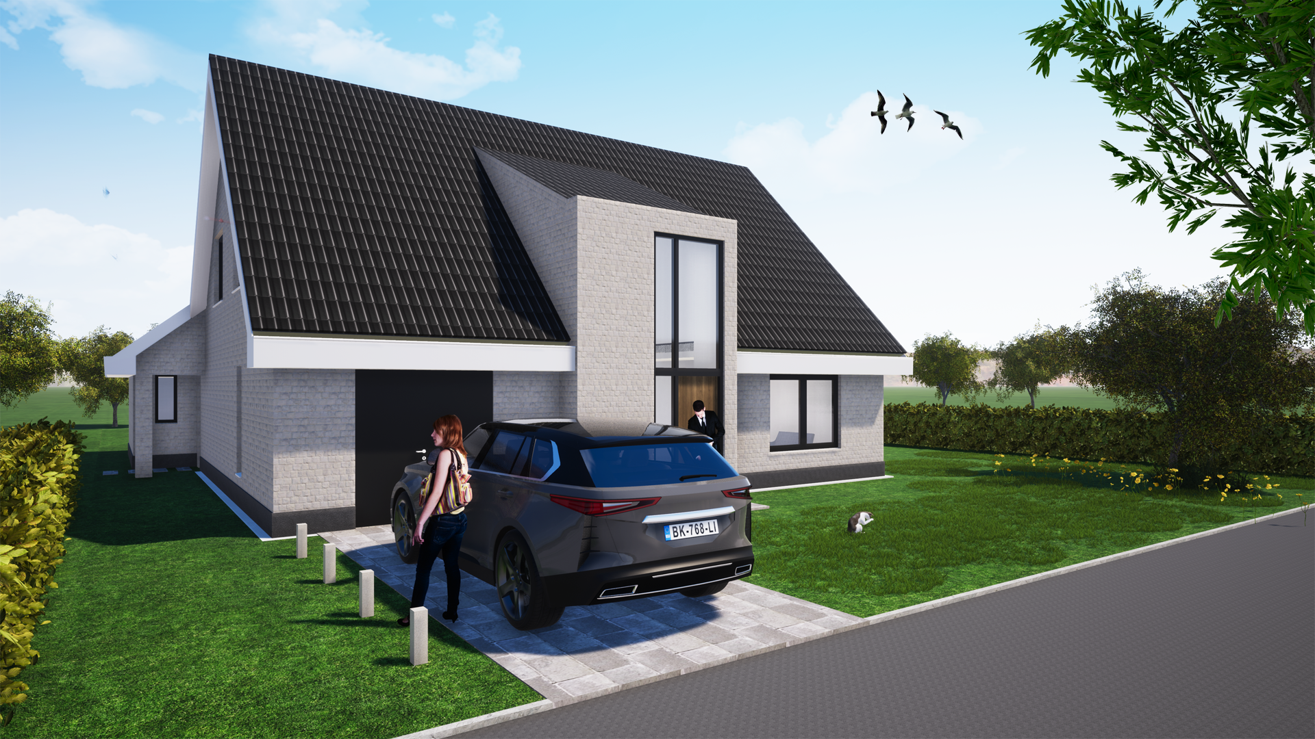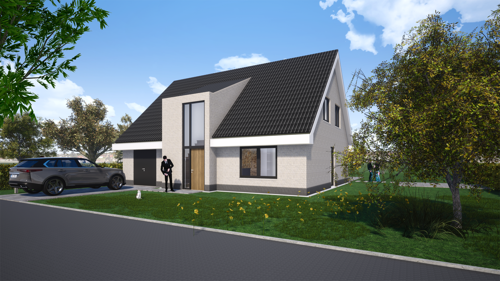 Het nieuwe entree geeft de bestaande woning die allure waar het naar verlangde. De herindeling van de voorgevel, de nieuwe pannen aangevuld met Keimwerk en een hardstenen plint geven de iets wat gedateerde uitstraling een hedendaagse klassiek moderne look.