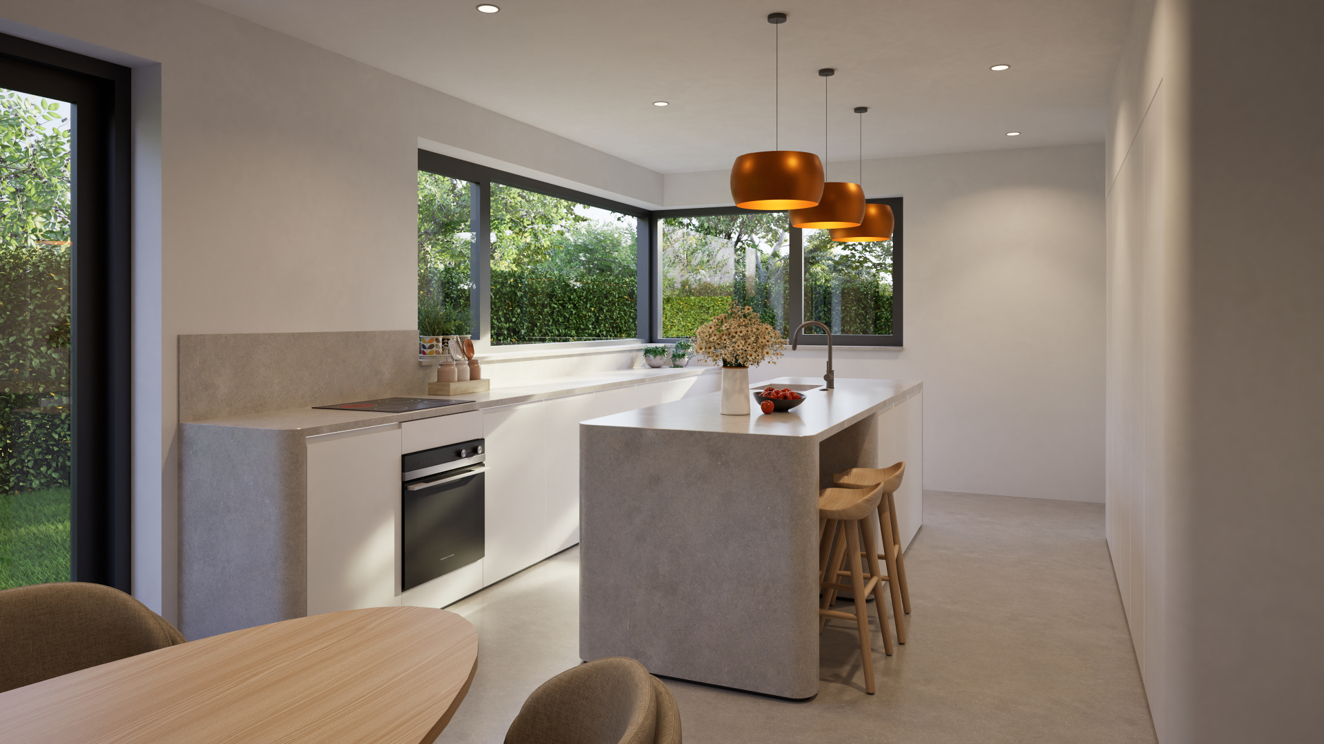 Aan de Korenbloemstraat te Heerhugowaard komt een vrijstaande hoekwoning. De woning kenmerkt zich door een heldere vorm, het lessenaarsdak haaks op de voor zijde. Het entree is afleesbaar aan de straat over de volledige hoogte van de woning. De zijgevel aan de straat zijde kent een erker door getrokken tot het dak met unieke vensters met uitzicht over de zij- en straatzijde. De woning kent een duidelijke leefruimte aan de staat en een kook en eetruimte aan de achterzijde.