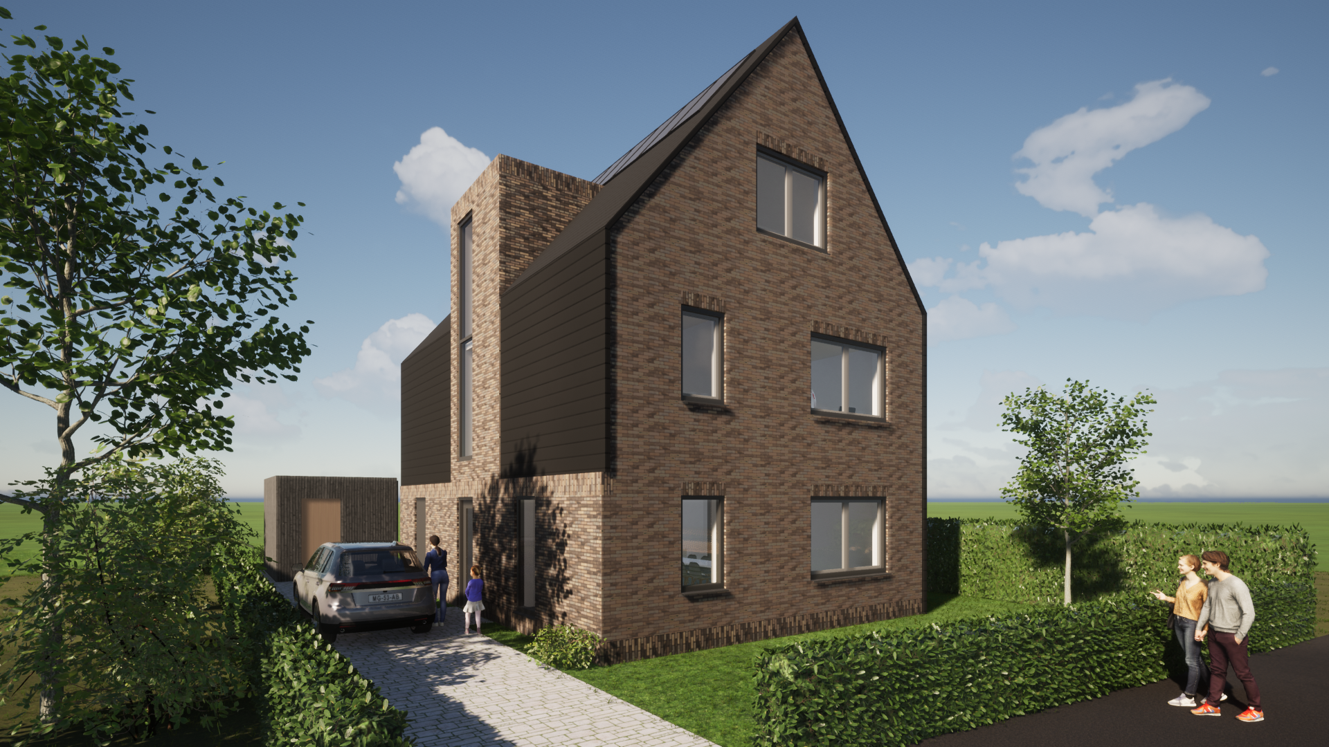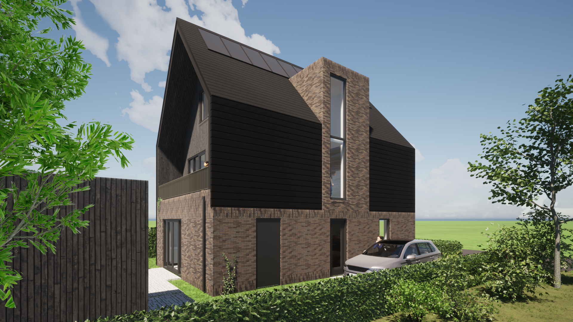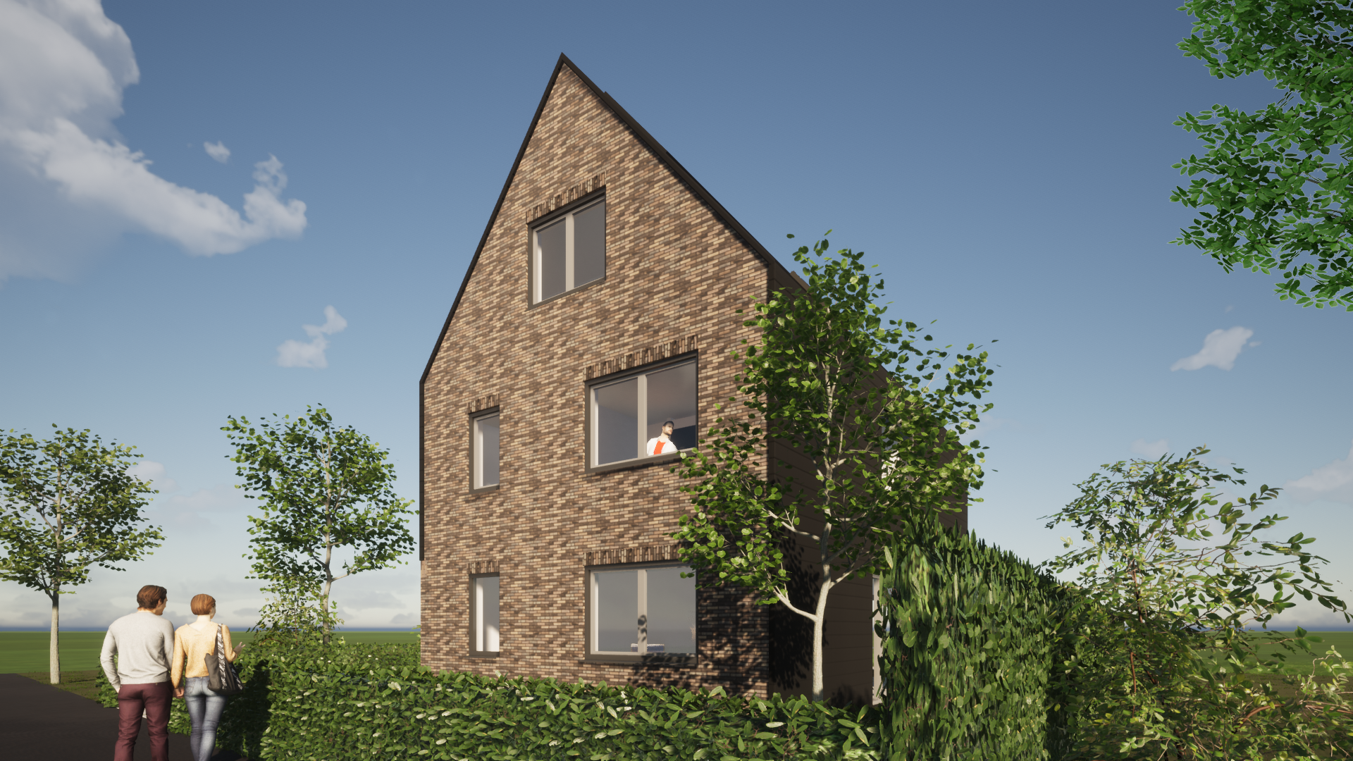 De woning zal onderdak bieden aan een grote leef verdieping gekoppeld met een vide aan de bovenliggende slaap verdieping. De verticale beweging is zichtbaar middels de grote vensters aan de zijkant van de woning, samen met het entree.